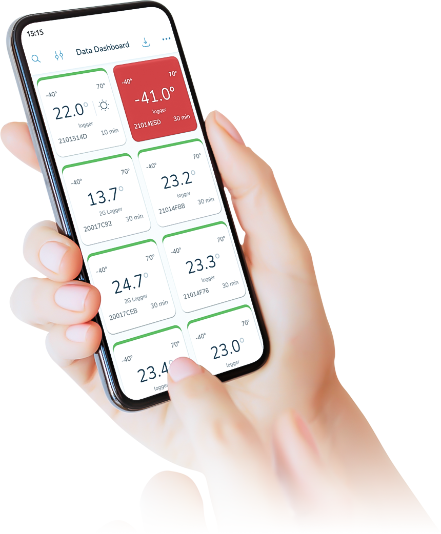 Identifiez rapidement les enregistreurs dont le niveau de mesure n'est pas optimal en regardant la couleur dans l'app