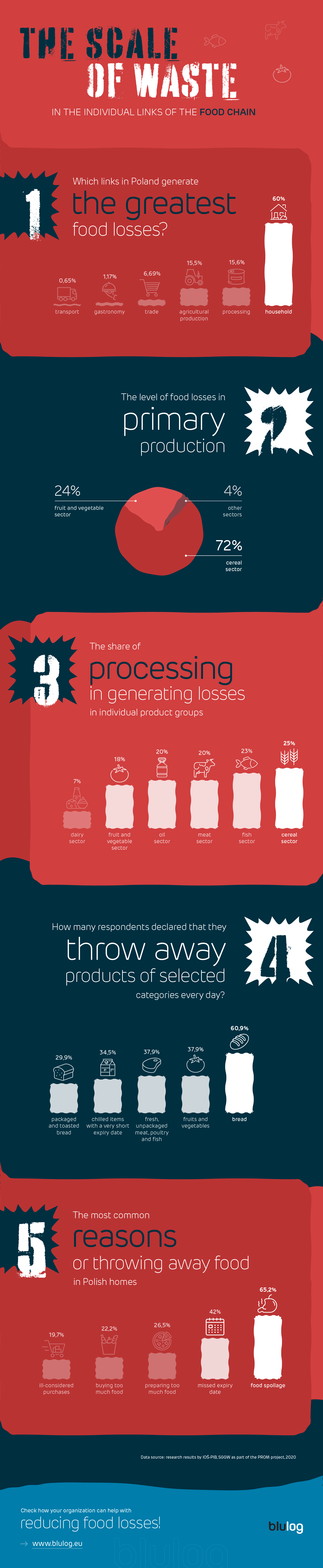 According to the report “Food losses and food waste in Poland”, prepared by the Institute of Environmental Protection, in Poland each year about 5 million tons of food go to the bin. Although consumers are primarily responsible for this state of affairs, a total of 40% of losses are generated in the remaining stages of the food chain. What causes the losses in individual links and what could be the remedy?