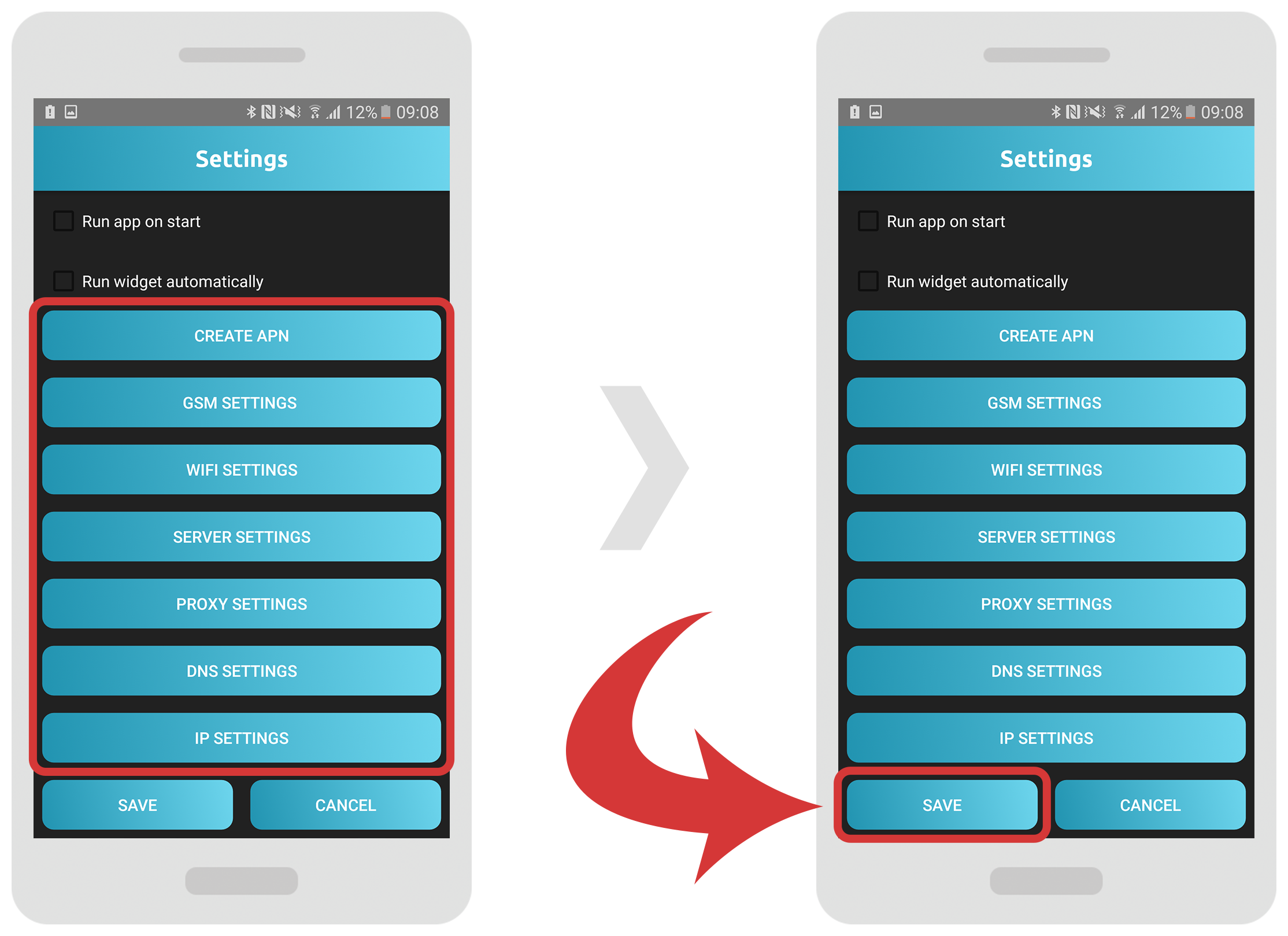 • Aby uruchomić widżet automatycznie po uruchomieniu aplikacji wystarczy zaznaczyć pole wyboru „Uruchom widżet automatycznie” („Run widget automatically”). Następnie stuknąć przycisk "Zapisz" („Save”).